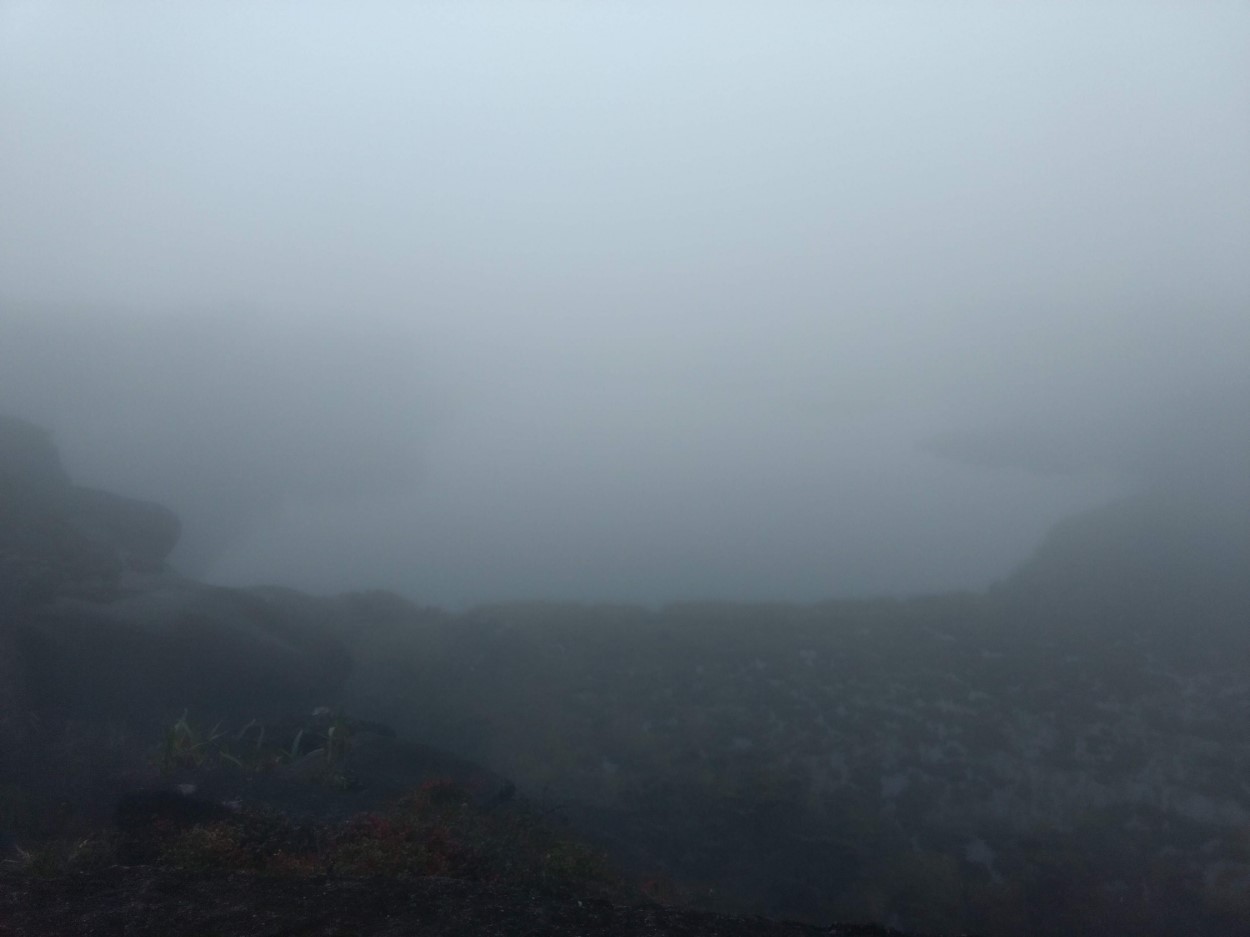 Após esse momento indescritível juntos, voltamos ao Hotel Coatí. Tomamos o nosso café da manhã e fomos para o lado da Guiana, em direção ao Rio Ouro e ao lago Gladys. O tempo que amanhecera lindo, começou a fechar. Não demorou muito, a chuva apareceu. No Rio Ouro não conseguimos ver os raios de sol sobre as pedras, o efeito dourado é o motivo para o nome dado. O Lago Gladys estava praticamente coberto pela cerração. Ainda ficamos um tempo ali e torcendo para que ela fosse embora, mas o frio apertou e voltamos para o acampamento. Se não chover ao menos um dia, não é o Monte Roraima.