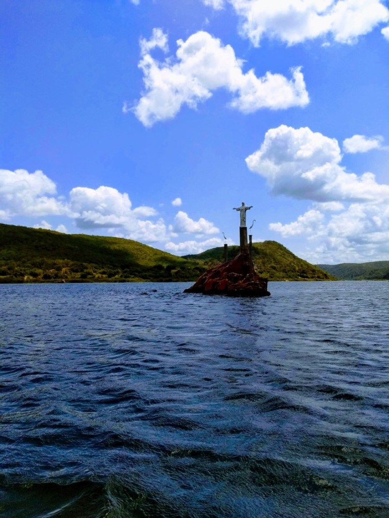 A sexta-feira, que antecedia a prova, foi dia de conhecer um pouco da cidade e, claro, nos ambientar com o rio. Saímos cedo da pousada e fomos até o ponto de passeio de catamarã pelo Cânion do Xingó. Que paisagem, que visual. Após a primeira euforia onde muitas câmeras, fotos, selfies e falatório dominavam e até mesmo iam contra todo aquele silêncio do lugar, fomos nos conectando com aquela imensidão de água verde com os paredões rochosos. Eu olhava para frente e pensava na profundidade, no vento, na paz que aquilo me passava. Sou privilegiada de fazer parte de um grupo que iria além e que nadaria no Velho Chico.