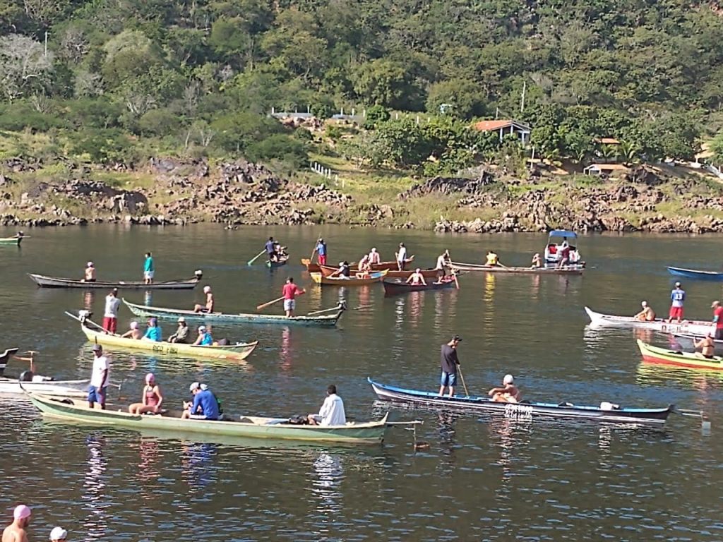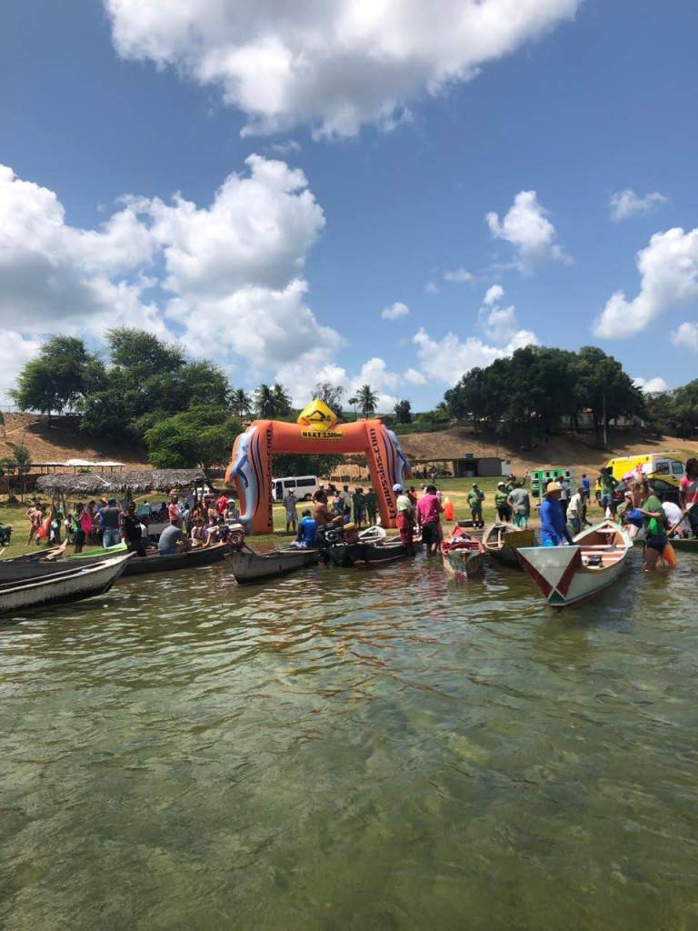 Claro que contar assim parece uma moleza. Mas, não é. Senti as famosas panelas d’água e meu corpo em alguns momentos perdia a direção, igual a um boneco sendo lançado por uma criança. Confesso que ria dessa percepção enquanto nadava. Tive medo de cair no remanso, entre o 4km e 5km, trecho que foi sinalizado no congresso técnico. Caiu ali, vai perder um tempo para sair. Não tem corrente. Depois, conversando com o Marcos, ele me explicou que o remanso é a parte mais temida (crença do povoado) do baixo Rio São Francisco porque quando acontecia alguma morte, era ali onde paravam os corpos. Melhor pular essa informação adicional.
