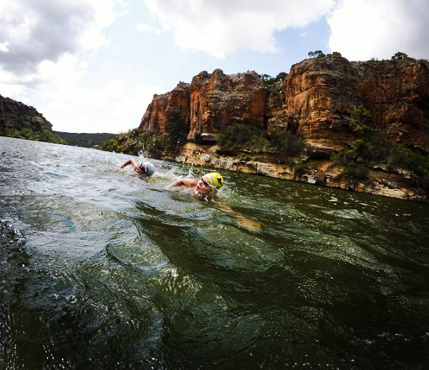 Nadar no Rio São Francisco é uma experiência difícil de explicar. A força da água me faz ter certeza que nós, meros mortais, humaninhos, somos nada diante do poder da natureza. Atravessei esse rio a uma velocidade de atleta profissional: 1min25s/100m. E isso se dá apenas por um motivo: a corrente. Eu não nadei no Rio São Francisco, mas sim surfei.