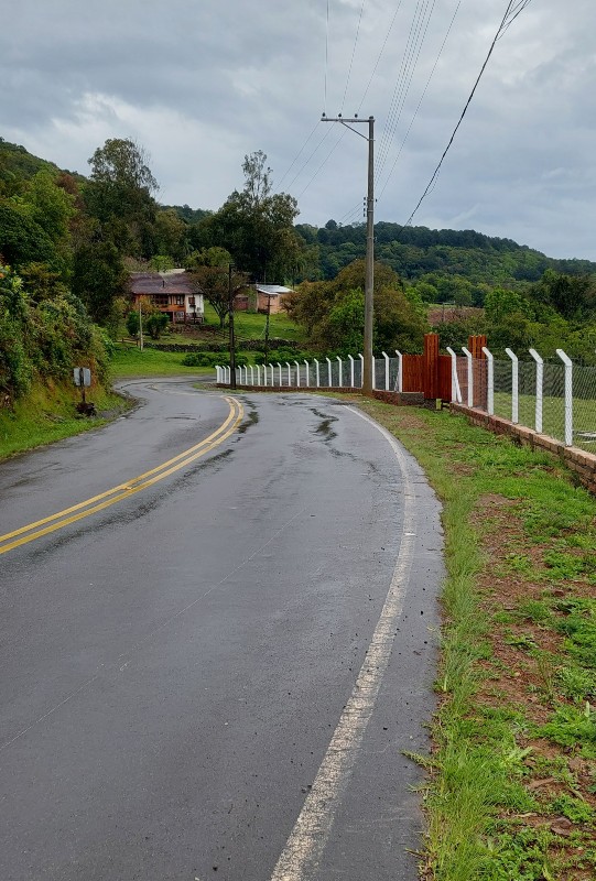 Poderia dizer que é o subúrbio de Gramado? Passava pelas casas fechadas e provavelmente isso se deve ao dia útil da semana, só não imaginava encontrar os pontos de parada também assim. De acordo com as informações do guia sobre os locais: cantina Linha Bela só funciona sobre reserva; Moinho Cavichion, vi uma placa dizendo que era um museu, não desviei da estrada para saber se estava funcionando e se oferecia produtos para comer e beber. Família Marcom também fechado.