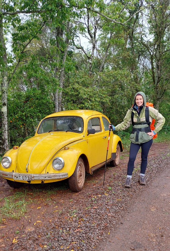 No início eu me preocupava com essa pergunta do estar sozinha. Normal para quem mora numa metrópole ter precauções e evitar dar informações como essa a desconhecidos. Para virar um pouco o foco da conversa perguntei sobre os peregrinos, por onde andavam, pois não havia encontrado nenhum até o momento e ela prontamente me respondeu: “só você passou por aqui hoje e talvez seja por causa dessa chuva. Desde a semana passada (quando caiu o forte temporal no Sul) o Caminho está vazio”. E eu ali procurando uma aventura.