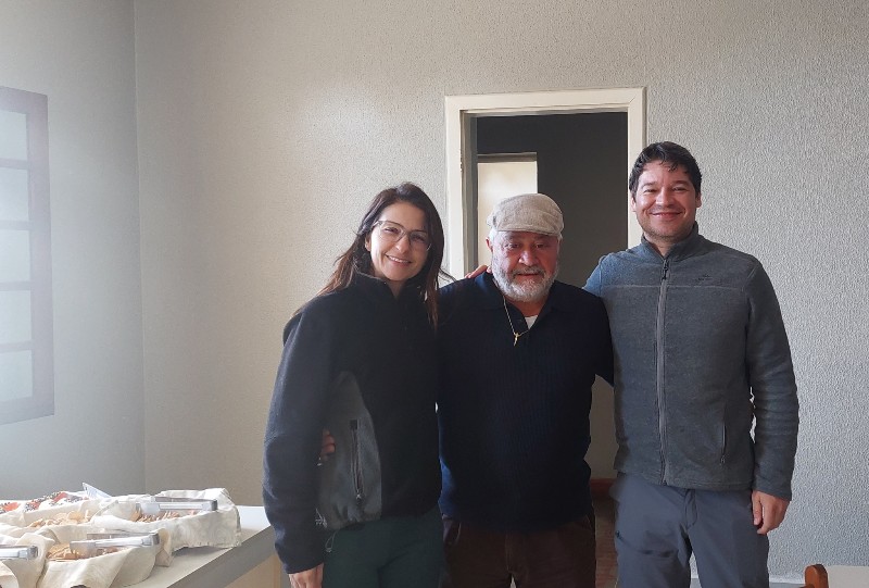 Chegamos na Vinícola Colombo, na verdade quase chegamos, porque fomos seduzidos a parar no vizinho, o Sr. Roque, da Vinícola Slomp, para conhecer e experimentar a sua produção. Era o combustível que faltava com o estômago vazio para me sentir ainda mais leve. Depois dessa pequena degustação, fomos para a Colombo, onde o Sr. Antônio e sua esposa Rosane aguardavam nos receber. Linda casa e acomodação. Claro que também teve degustação por ali e definimos qual vinho tomaríamos mais tarde no jantar.