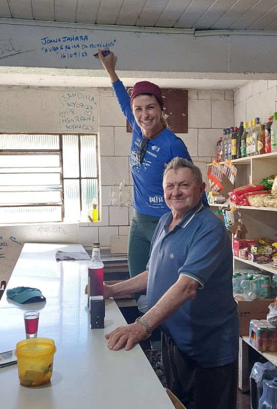 Minhas botas impermeáveis não aguentaram o aguaceiro e os pés estavam molhados e gelados! Ainda pensava o quanto que faltava para chegar e calculei mais umas 2h se eu continuasse naquele ritmo. No km 9, encontrei um armazém aberto, da D. Isaura, e tremendo de frio pedi um café quente e algo para comer. Acho que se ela oferecesse cachaça eu tomaria também. Um pastel quentinho feito na hora enquanto me aquecia e muita conversa para esquentar o coração. Já estava preparada para as perguntas: “você veio sozinha, é de onde? ”