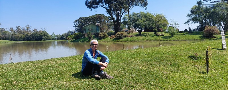 Madrugada de muito frio (3ºC) e enrolada nas cobertas como se fosse um casulo, difícil foi levantar da cama. As panturrilhas deram sinais de fadiga pela ousadia do dia anterior e muito calmamente tomamos café da manhã e curtimos o lindo dia de sol que se iniciava na frente da casa para nos esquentarmos. O nosso ritmo já passaria a ser outro desde que o Sr. Valnei informou que era um trecho bem tranquilo e mais curto. Não tivemos pressa em sair, eram quase 12h, e muito menos em andar rápido. Paramos tantas vezes para fotos e papos aleatórios. Um novo ano se iniciava: 41.