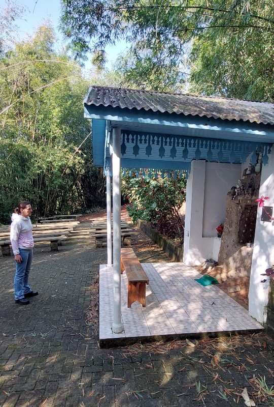 No dia seguinte após o café da manhã, Suzana me levou para conhecer a gruta próxima à Casa e contou um pouco sobre o fundador José Preto e o que o motivou a construí-la. Eu adoro ouvir e me envolver nessas histórias! Fizemos as nossas preces e fomos ao encontro do Gabriel, que me esperava na casa da Nona, onde marcamos o nosso ponto de encontro.