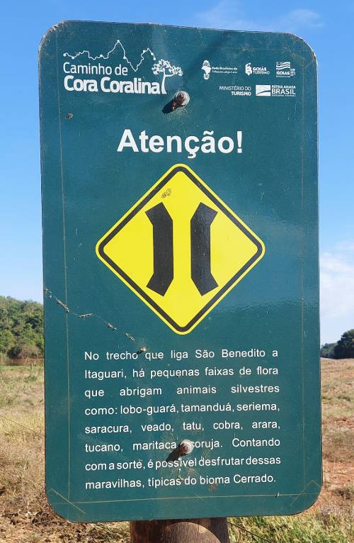 De Ferreiro até Goiás Velho faltava muito pouco, menos de 7km, só não esperava ter que andar no asfalto no trecho final até a entrada da cidade. Da igreja até a rodovia, foram 4km e mais 2,7km se espremendo no acostamento devido aos veículos em alta velocidade. Recomendo caminhar no sentido contrário aos carros, para assim ver o que talvez os motoristas não consigam (principalmente nas curvas). Ainda é necessário atravessar a rodovia, desesperador tanto para caminhante quanto para ciclista.