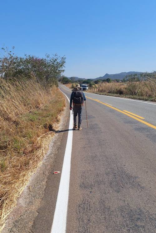 Mesmo economizando 6km de asfalto e mais a subida da Serra de Jaraguá, que fomos de mototáxi, ainda considero o pior trecho de todo o Caminho. Come-se poeira o tempo inteiro, devido ao alto fluxo de carros e, mesmo sendo dia de domingo, o vem e vai de veículos era absurdo. Não sei quantos banhos foram necessários para tirar a poeira entranhada na pele, narinas, ouvidos e cabelo. Me senti uma humana empanada. Poucas opções para conseguir parar e descansar, visto que não havia praticamente sombra nesse trecho. Nem sombra e nem água. Nesse dia eu me perguntei que férias eram essas?