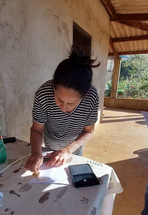 D. Cleuza carimbando o passaporte