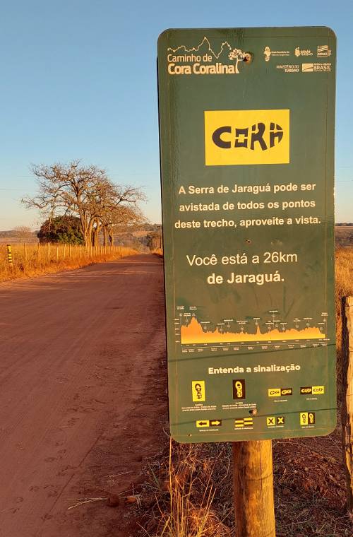 Ao ver o mapa, acreditava ser necessário subir a Serra de Jaraguá para chegar em Jaraguá, e já estava sofrendo de véspera por ter que andar 38,5km. Foi um certo alívio quando o Sr. Onilavir explicou que a havia diferentes maneiras de fazer a subida da Serra, seja no mesmo dia, a pé ou de carro, ou até mesmo no dia seguinte, como muitos fazem, para assistir ao amanhecer. As hospedagens indicadas ficam bem fora do fim desse trecho, então se fôssemos para fazer tudo à risca, contaria bem mais que essa distância oficial.