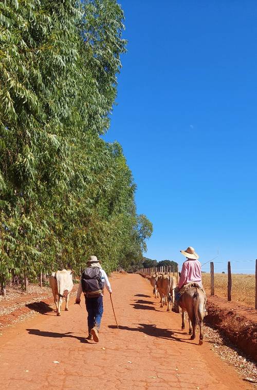 Os dias são longos e o tempo conta de forma diferente. O sol está ali, sempre atrás de você. Fazer o Caminho no sentido Corumbá de Goiás x Cidade de Goiás é favorável, por conta da posição do sol, ao contrário significa encara-lo brilhando de frente o tempo todo. Nem pensar!